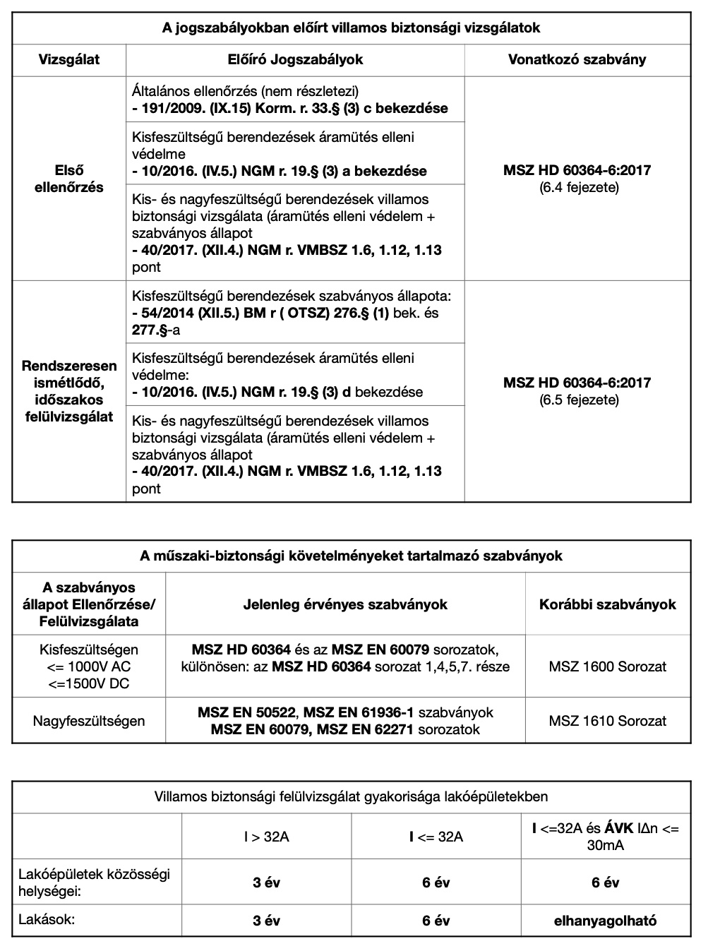 Az ellenőrzéseket és az ismétlődő felülvizsgálatokat előíró jogszabályok.